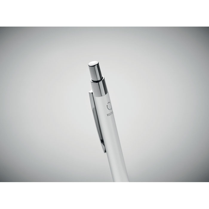 Kemični svinčnik iz recikliranega aluminija. Videz aluminija daje temu peresu bolj vrhunski videz in občutek. Modro polnilo