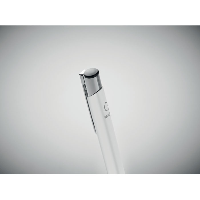 Kemični svinčnik iz recikliranega aluminija. Videz aluminija daje temu peresu bolj vrhunski videz in občutek. Modro polnilo.