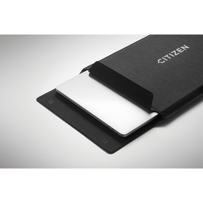 3 v 1 16-palčni RPET etui za prenosnik s stojalom za prenosnik in funkcijo podloge za miško, ko je razgrnjen.