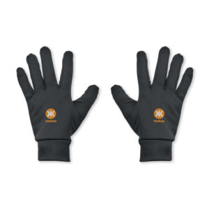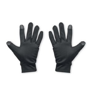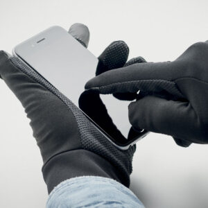 Taktilne športne rokavice za pametni telefon iz poliestra. Dva prsta s funkcijo dotika s protizdrsnimi pikami na dlani in prst iz PVC-ja.