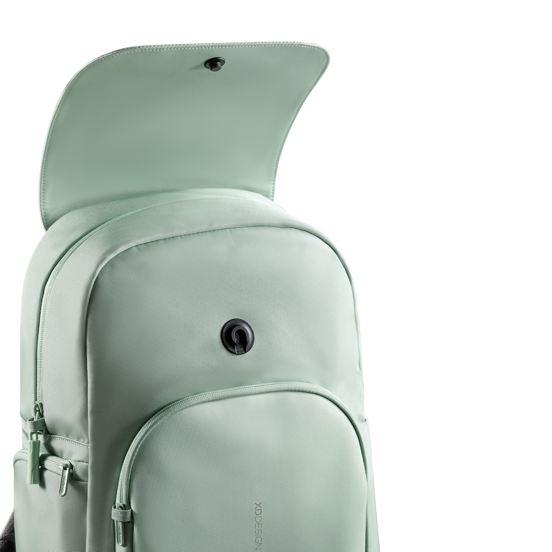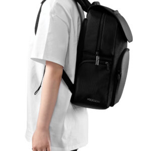 Inovativen mehki nahrbtnik združuje varnost, stil in trajnost. Izdelan je iz 1200D RPET tkanine z AWARE™ certifikatom in 28 % recikliranih materialov, zato je okolju prijazen in hkrati izjemno vzdržljiv. Vgrajen zavihek proti kraji, Fidlock zapiranje, RFID zaščita in predal za 16” prenosnik zagotavljajo popolno varnost in organizacijo.