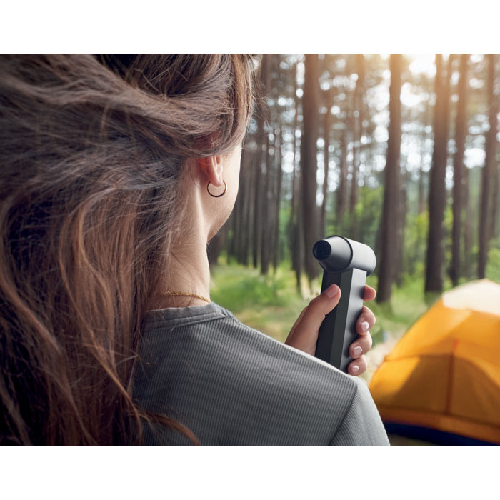 Močan ventilator. Prenosni turbo ventilator s 3 LED lučkami in 4 nastavitvami hitrosti vetra do 130000 vrt/min. Hitrost vetra 35 m na sekundo. Vgrajena polnilna baterija s kapaciteto 4000 mAh. To napravo lahko uporabljate kot čistilec prahu, puhalnik, ventilator ali sušilnik za lase.