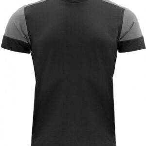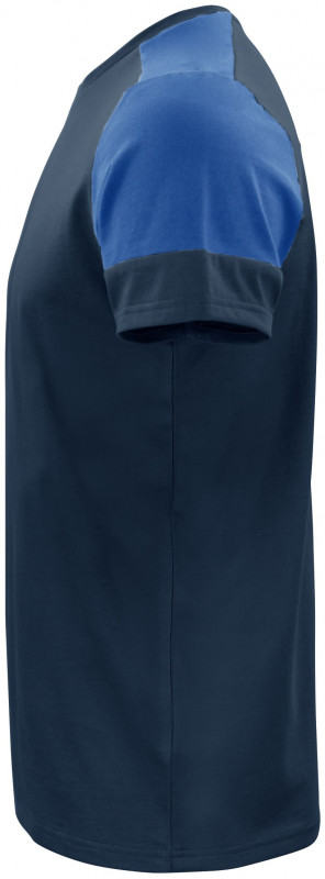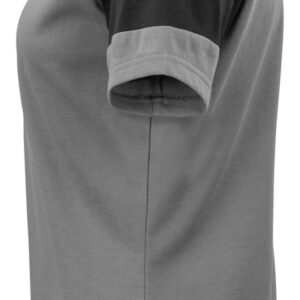 Moderno krojena, dvobarvna ženska majica. Na ovratniku ima Elastan in je iz štirih slojev, ki so rebrasti za boljšo stabilnost. Dve ločeni etiketi na vratu (z blagovno znamko in velikostjo). V notranjem levem stranskem šivu je na voljo še etiketa o vzdrževanju. Obročasto tkanje. Tkanina je bila obdelana z encimskim pranjem, ki material predhodno skrči in mu daje mehak občutek. Certifikat Oeko-Tex 100, OCS in GRS. Majice, pakirane po 5 kosov v biorazgradljivi vrečki – certificirano s strani OK compost INDUSTRIAL in TÜV AUSTRIA. Material: 50 % organski bombaž, 50 % recikliran poliester; 180 g/m²