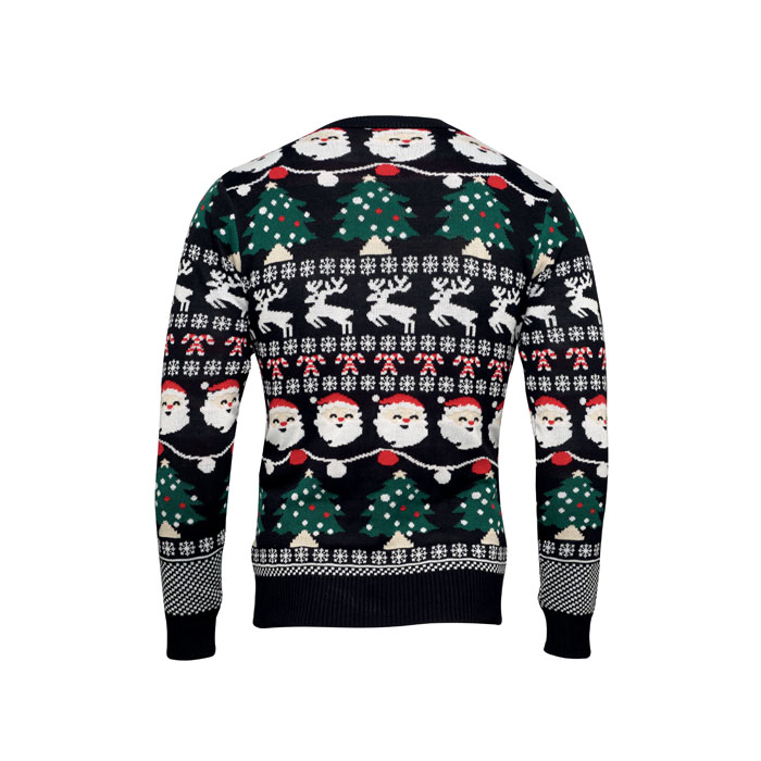 Božični pulover z 10 LED lučkami v akrilni barvi. Velikost: S/M. Pokažite se v službi ali na družinski božični večerji v slogu s tem prazničnim puloverjem. Odstranljiv prostor za baterije. Vključeno 2 bateriji CR2032.