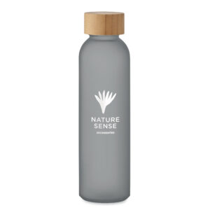 Steklenička z matiranim zaključkom in bambusovim pokrovčkom. Ne pušča.
