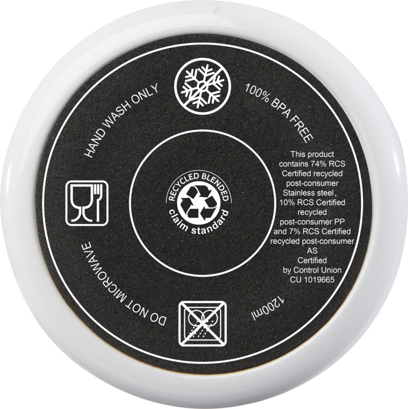 Notranja stena kozarca je narejena iz reciklirane plastike, zunanja stena pa iz recikliranega nerjavečega jekla s certifikatom RCS.