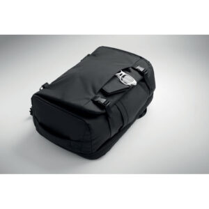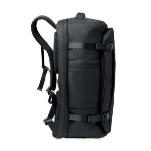Velik potovalni nahrbtnik za prenosni računalnik velikosti 17 palcev iz poliestra 600D RPET. Ima več predalov, enega glavnega za oblačila in dva oblazinjena za prenosni računalnik, tablico in drugo. Oblazinjena zadnja plošča, naramni trak, ročaj.