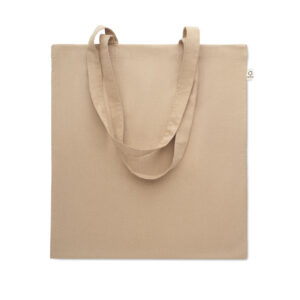 Nakupovalna torba iz recikliranega bombaža z dolgimi ročaji je trajnostna in priročna izbira za vsakodnevne nakupe. Narejena iz okolju prijaznih materialov, ponuja udobje in vzdržljivost. Popolna za promocijo vašega podjetja – dodajte svoj logotip in ustvarite edinstveno darilo!